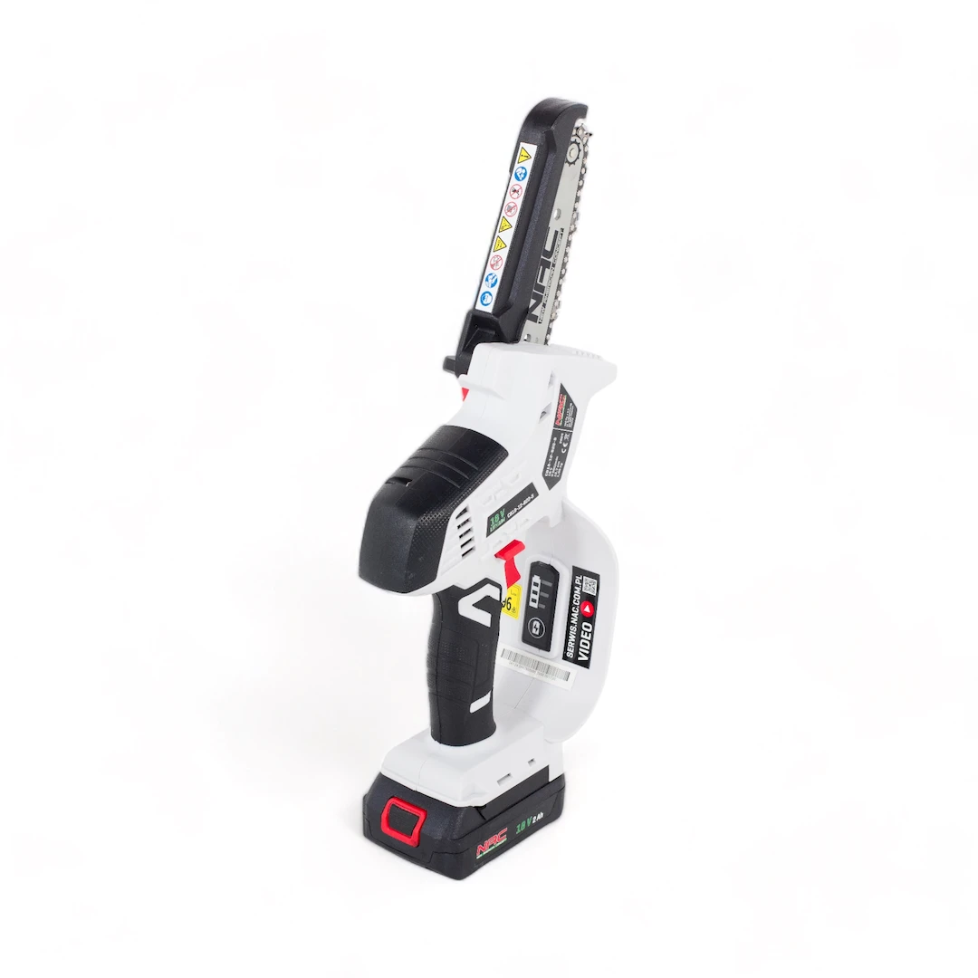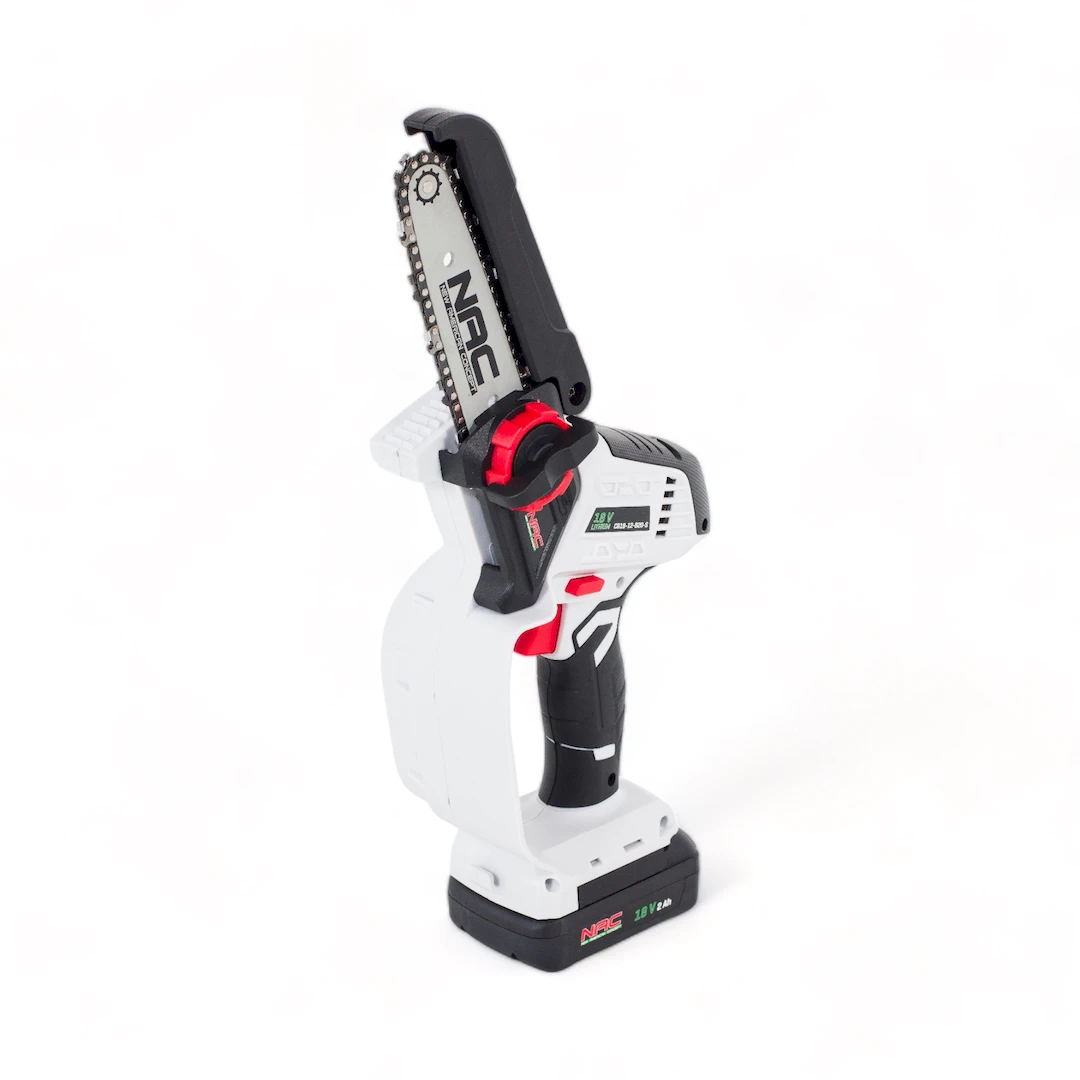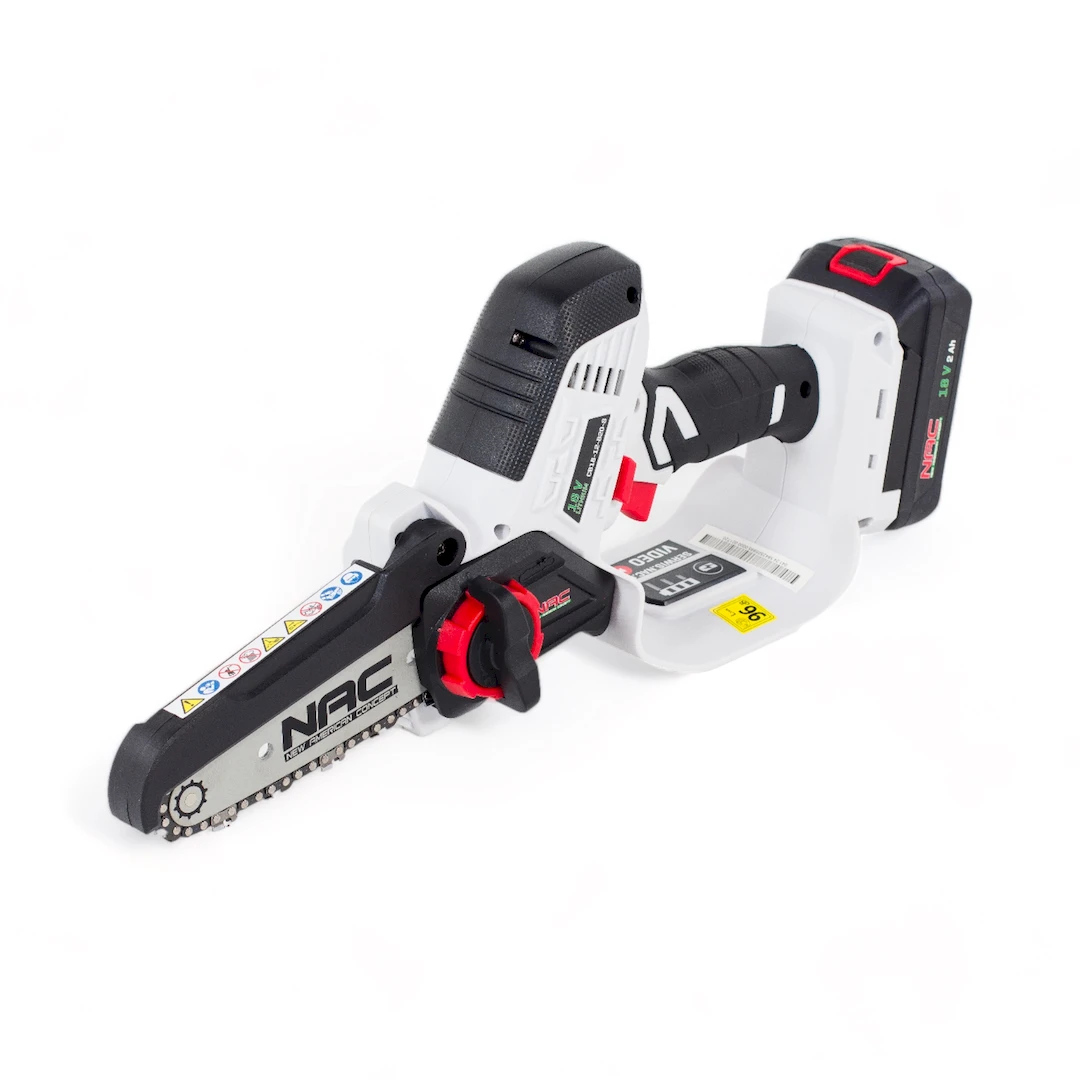 Piła akumulatorowa marki NAC. Kompaktowe wszechstronne narzędzie, które idealnie sprawdzi się przy pielęgnacji drzew i krzewów w każdym ogrodzie. Dzięki zasilaniu akumulatorem, zapewnia mobilność i swobodę działania bez konieczności podłączania do źródła prądu, co czyni ją idealnym rozwiązaniem do prac na terenach bez dostępu do elektryczności. Jej lekka i niewielka konstrukcja ułatwia pracę w trudno dostępnych miejscach, np. podczas przycinania drobnych gałęzi.