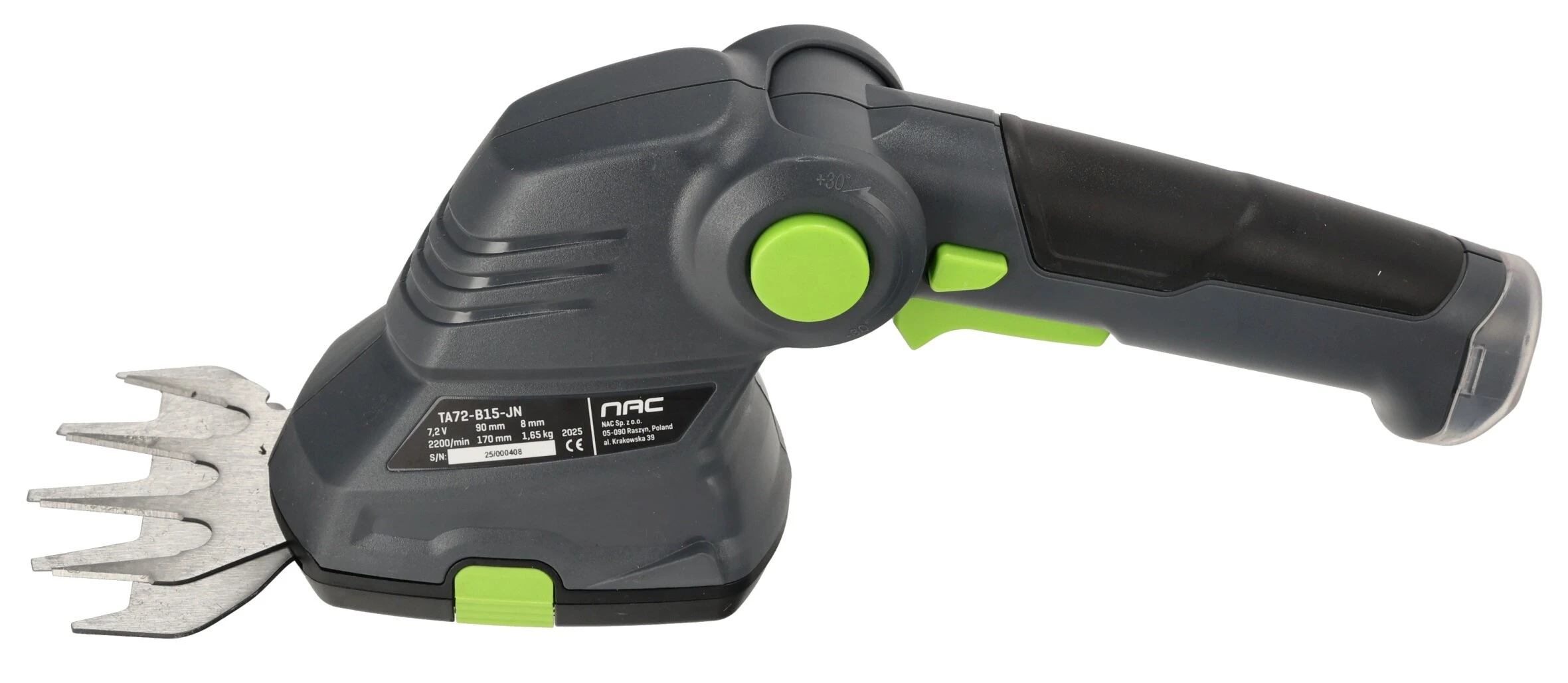 Akumulatorowe nożyce NAC TA72-B15-JN to kompaktowe i lekkie narzędzie idealne do pielęgnacji ogrodów. Wyposażone w akumulator Li-Ion 7,2 V (1,5 Ah) umożliwiają cięcie trawy, krzewów i żywopłotów.