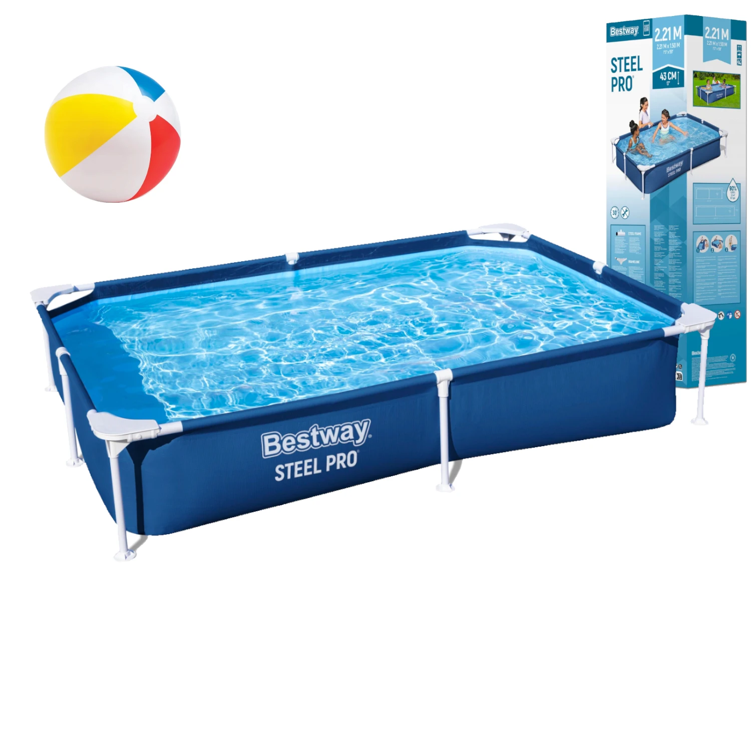 Ogrodowy basen stelażowy Bestway® Steel Pro® o wymiarach 221x150x43 [cm]