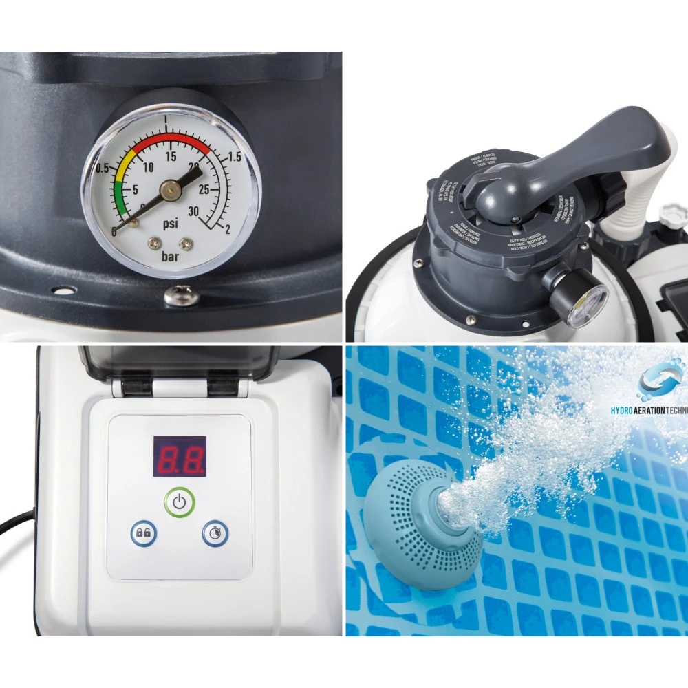 Intex wprowadził rewolucję w basenach ogrodowych - Hydro Aeration Technology™ czyli napowietrzanie wody podczas jej filtrowania, dostępne we wszystkich pompach tego producenta. Miliony bąbelków powietrza są wytwarzane przez pompę, czyniąc wodę łatwiejszą do czyszczenia i filtrowania, jest bardziej przejrzysta, świeża i przyjemna w dotyku, niemalże jak po jej wymianie !