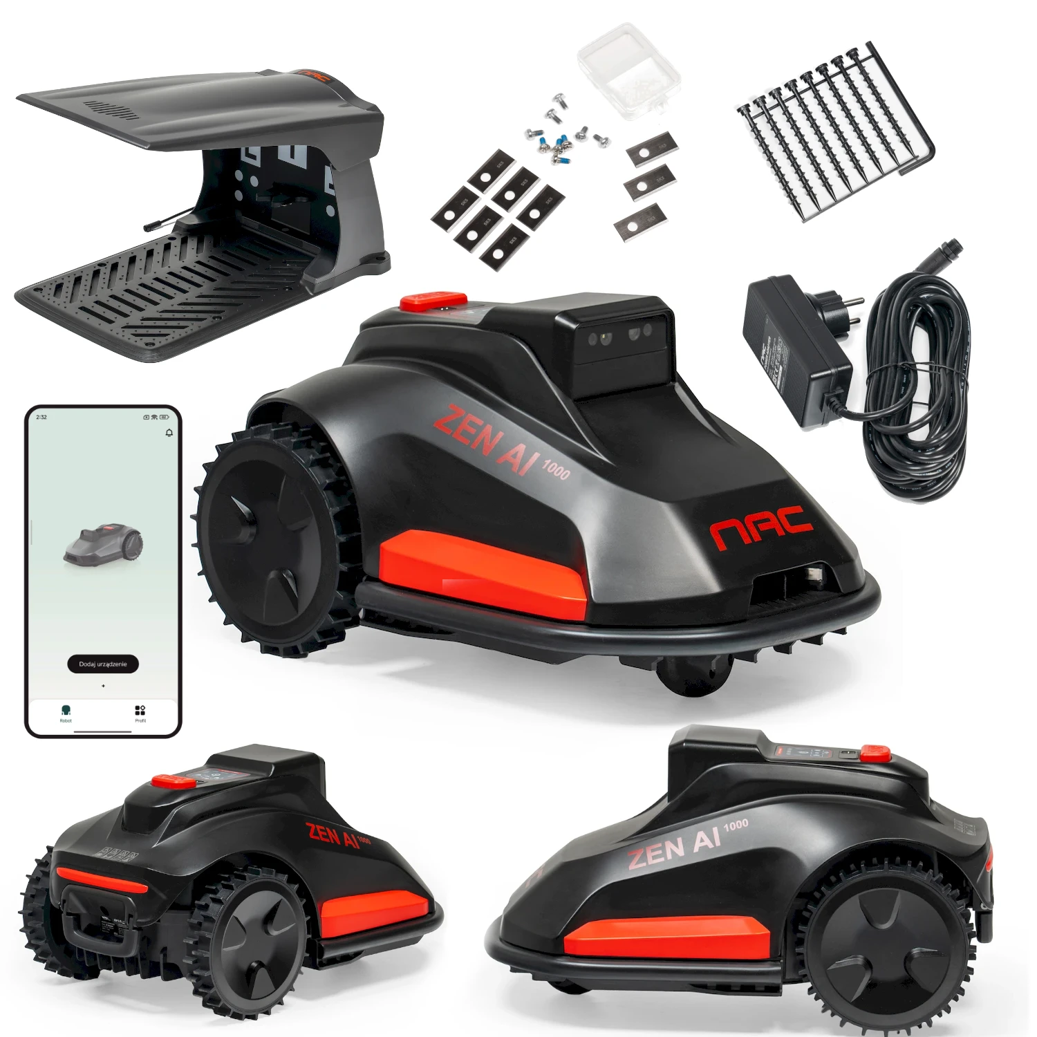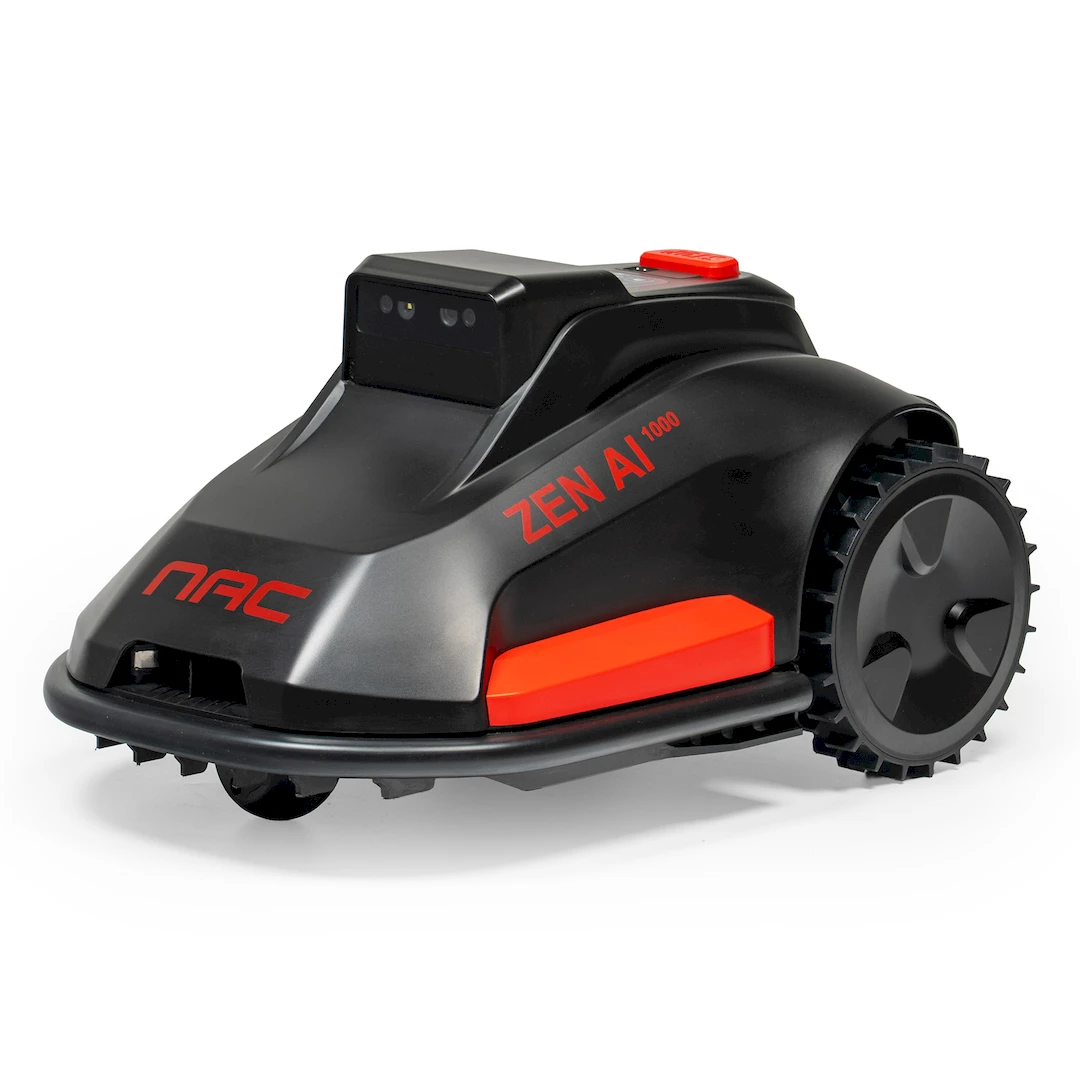 Robot koszący NAC ZEN AI 1000 to nowoczesne rozwiązanie do trawników o powierzchni do 1000 m² wyposażony w kamerę AI, łączność Wi‑Fi i sieć komórkową. Dzięki systemowi NAC AI VISION robot porusza się autonomicznie, omija przeszkody i nie wymaga przewodów obwodowych.