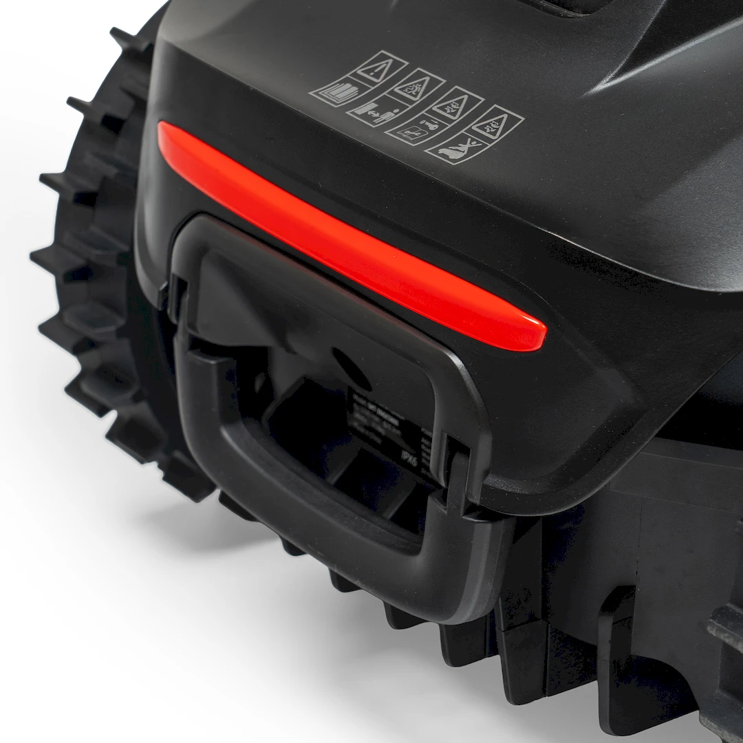 Robot koszący NAC ZEN AI 1000 został wyposażony w czujnik deszczu, który przerywa koszenie i kieruje urządzenie do stacji, gdy warunki nie sprzyjają pracy.