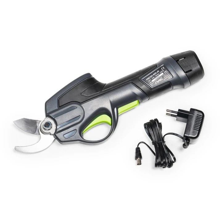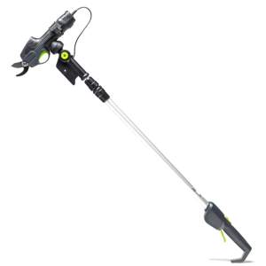 Lekki i bardzo poręczny sekator do cięcia gałęzi NAC PRB72H-B20-JN zasilany akumulatorem 7,2 V o pojemności 2 Ah. W zestawie z wysięgnikiem o maksymalnej długości aż 320 cm.