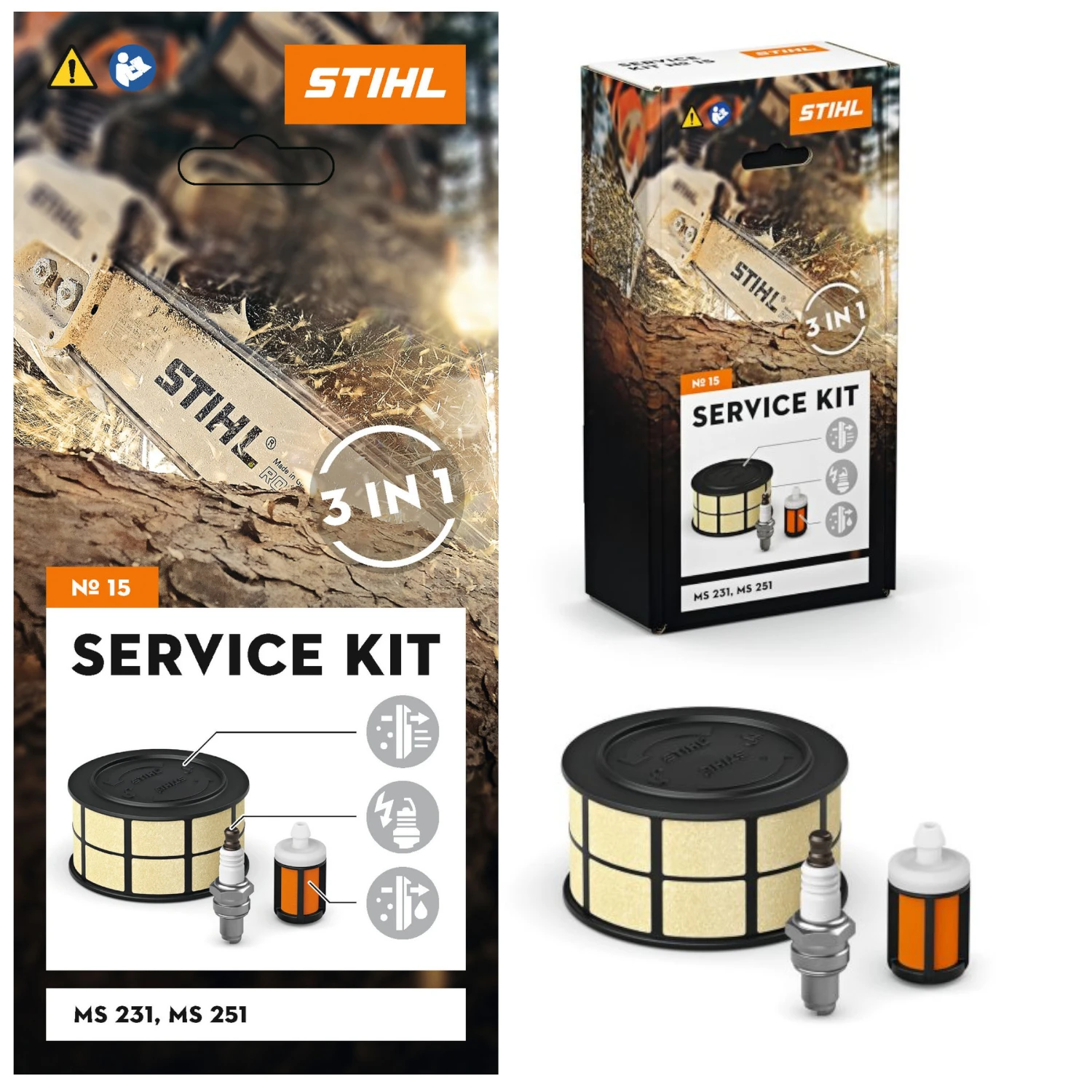 Zestaw serwisowy nr 15 umożliwia samodzielną wymianę podstawowych części eksploatacyjnych w pilarkach spalinowych STIHL MS 231, 251. Regularna wymiana części eksploatacyjnych zwiększa niezawodność i żywotność urządzenia. W zestawie: