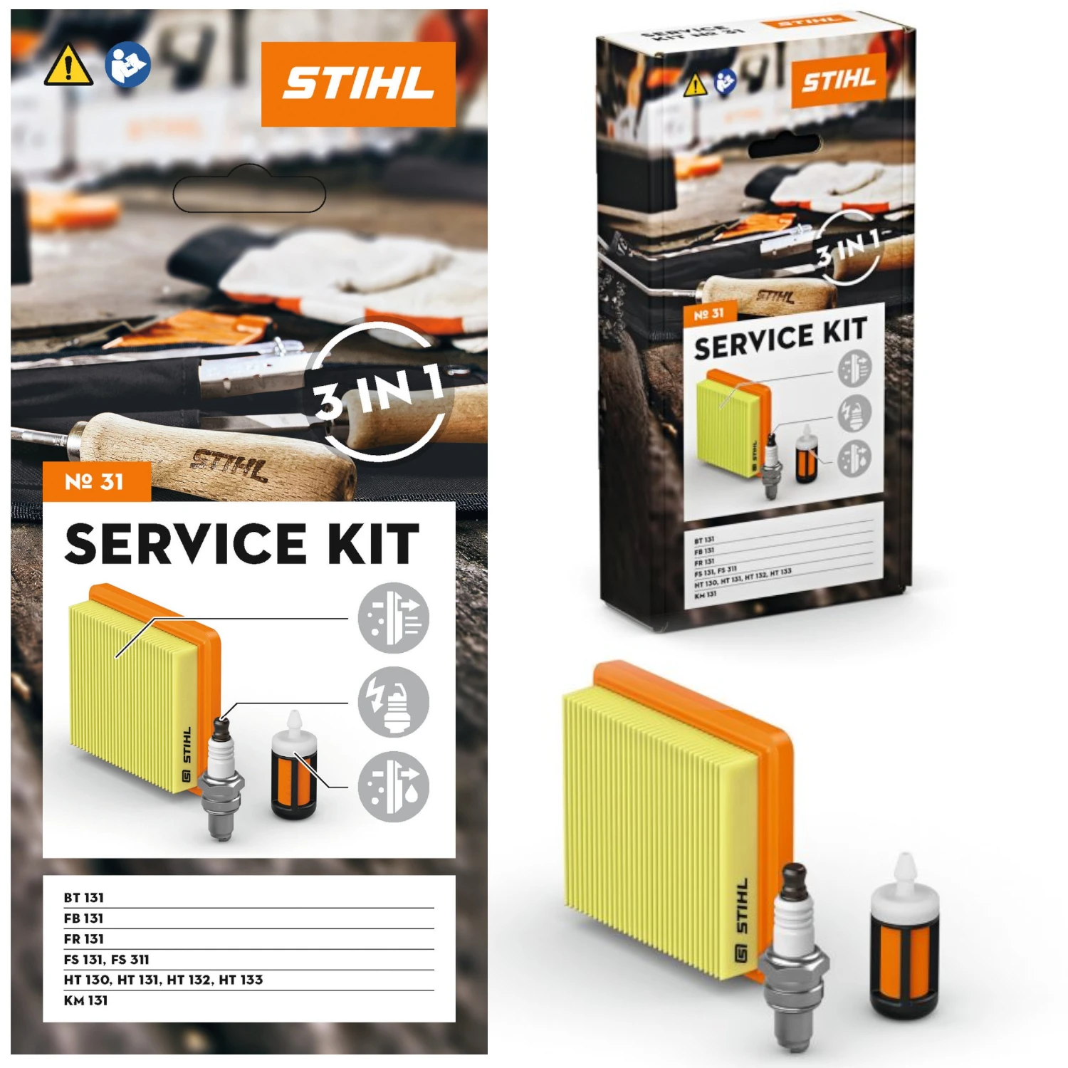 Zestaw serwisowy nr 31 umożliwia samodzielną wymianę podstawowych części eksploatacyjnych w kosach spalinowych STIHL FS 131/311, FR/FB 131 oraz innych urządzeniach spalinowych HT 130/131/132/133/135, KM 131, BT 131. Regularna wymiana części eksploatacyjnych zwiększa niezawodność i żywotność urządzenia. W zestawie: