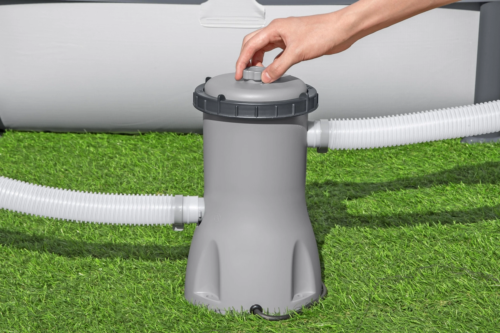 Elektryczna pompa filtrująca toń wody z wszelakich zanieczyszczeń o wydajności 3 028 l/h. W zestawie dołączone są węże oraz złączki niezbędne do podłączenia pompy oraz się jeden filtr kartuszowy typu Il, o indeksie 58094. Filtry należy co 2-3 dni płukać pod bieżącą wodą, oraz wymieniać co 2 tygodnie.